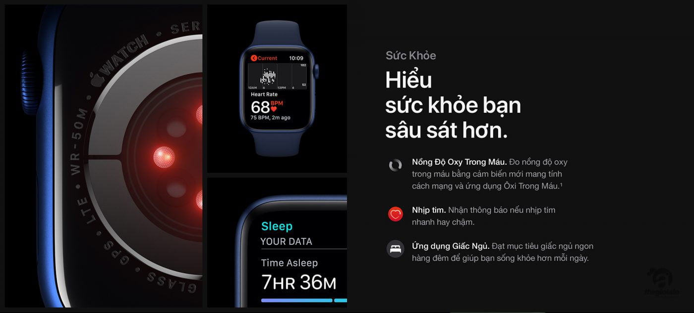 - Apple Watch Series 6 tương thích với iPhone 6s hoặc các phiên bản cao hơn sử dụng iOS 14 hoặc các bản cập nhật cao hơn.