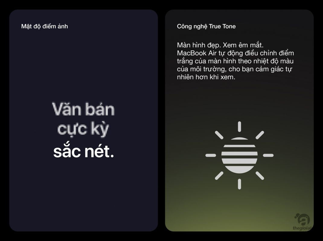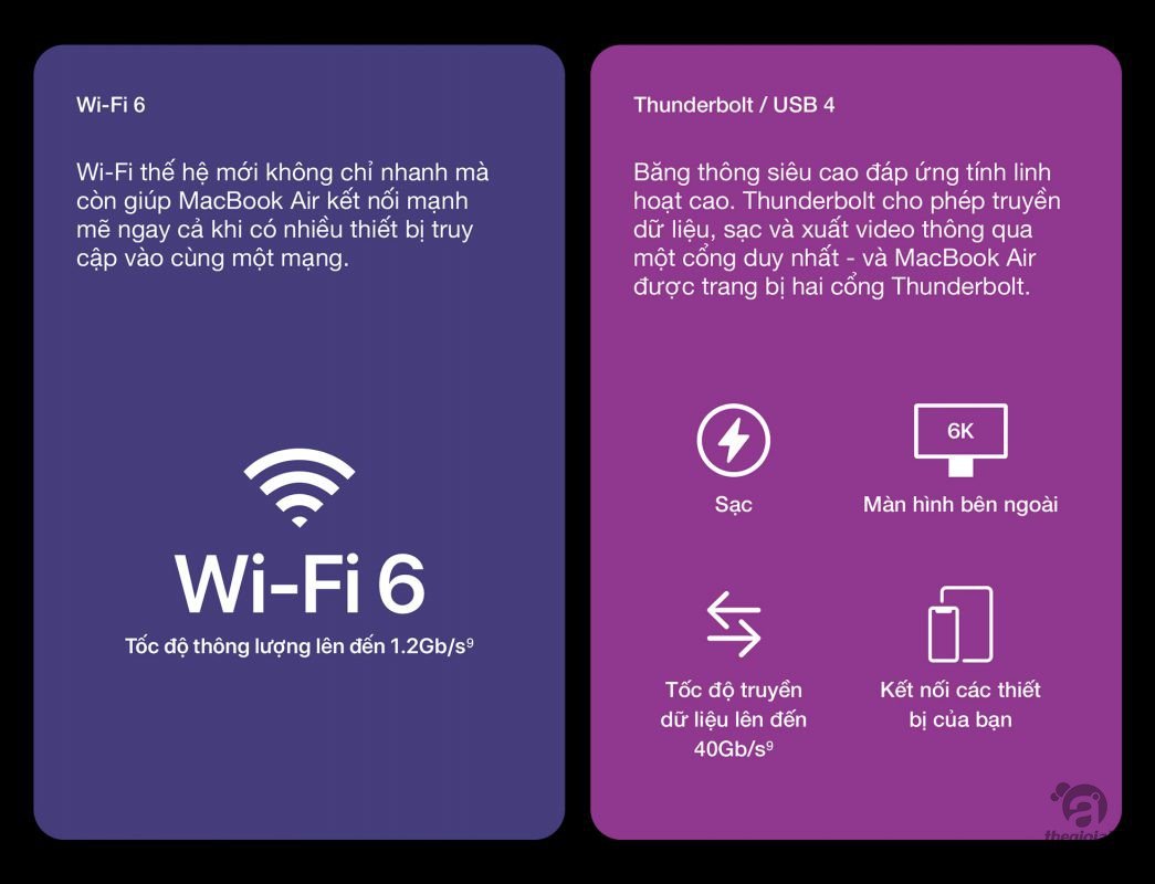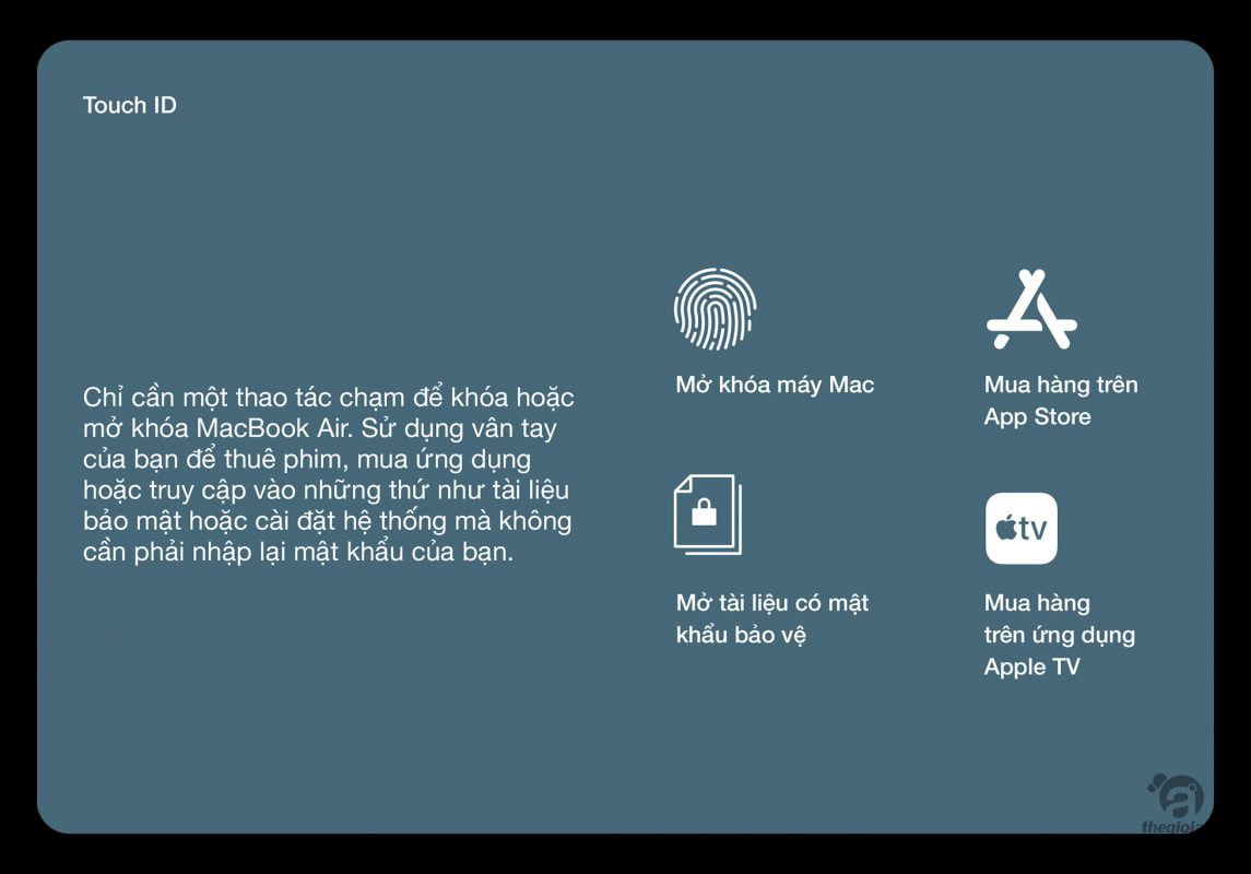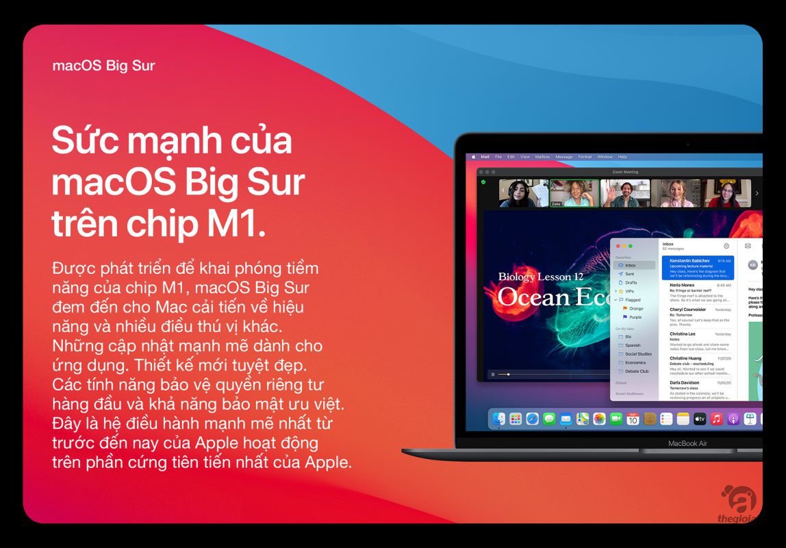 Máy tính xách tay mỏng và nhẹ nhất của Apple, nay siêu mạnh mẽ với chip Apple M1. Xử lý công việc giúp bạn với CPU 8 lõi nhanh như chớp. Đưa các ứng dụng và game có đồ họa khủng lên một tầm cao mới với GPU 8 lõi. Đồng thời, tăng tốc các tác vụ máy học với Neural Engine 16 lõi. Tất cả gói gọn trong một thiết kế không quạt, không tiếng ồn, thời lượng pin dài nhất từ trước đến nay lên đến 18 giờ.1 MacBook Air. Vẫn cực kỳ cơ động. Mà mạnh mẽ hơn nhiều.