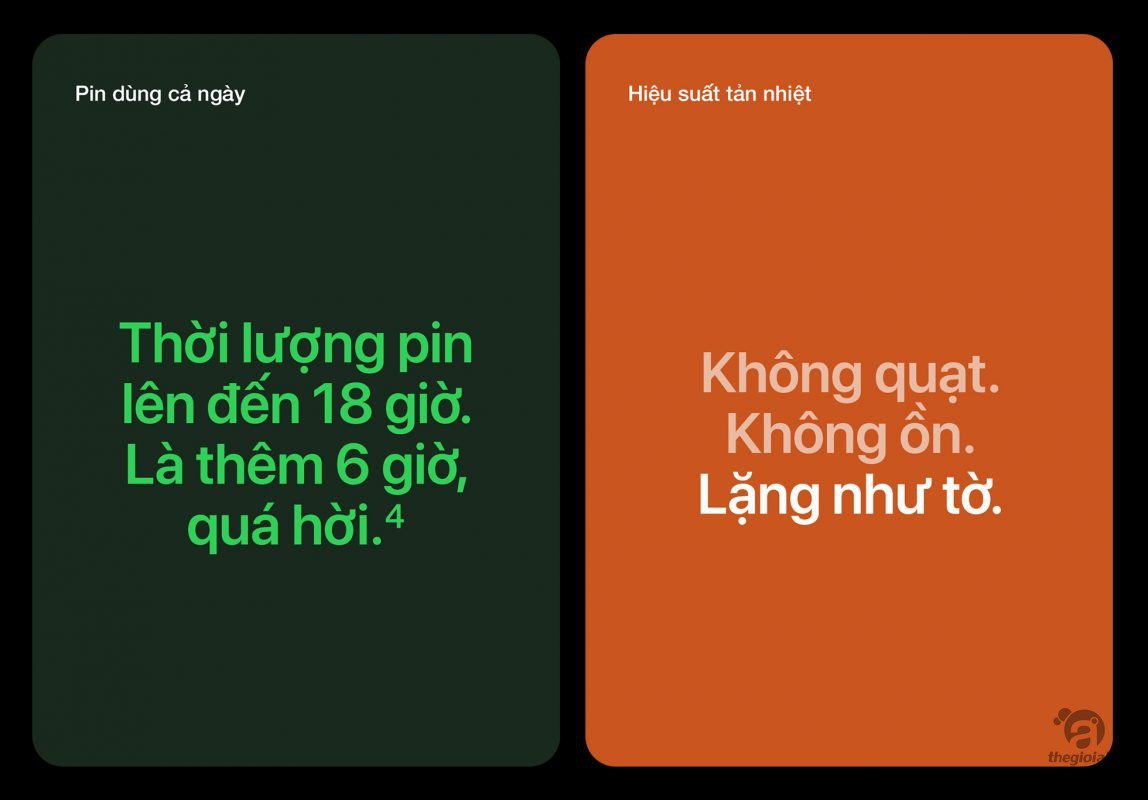 Thời lượng pin khác nhau tùy theo cách sử dụng và cấu hình. Truy cập apple.com/batteries để biết thêm thông tin.