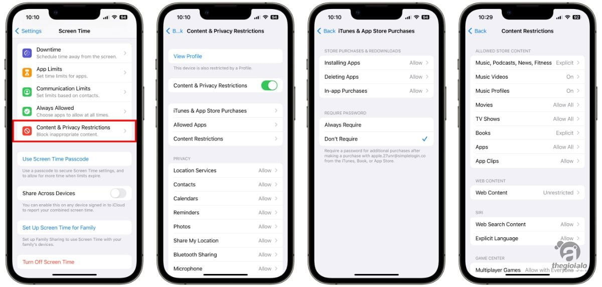 Cha mẹ có thể ngăn con mình mua hàng trong ứng dụng, mua nội dung từ iTunes hoặc cài đặt và xóa ứng dụng.